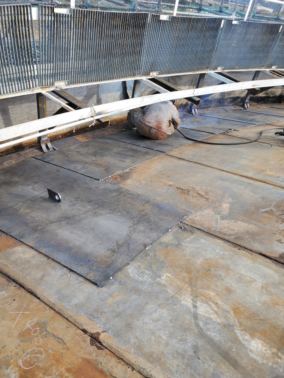 손상 철판 부위 덧대기 작업