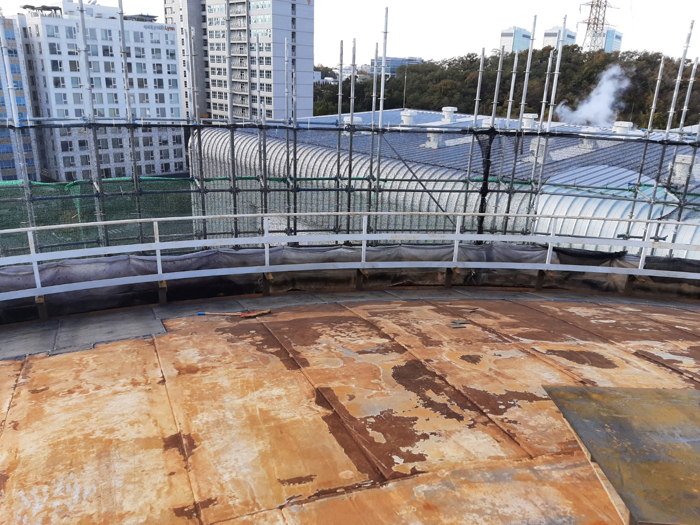 축열조 상부 손상된 철판